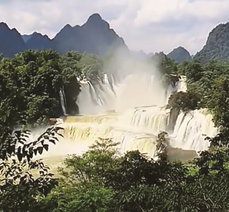 瀑布仿若镀上了一层金 视频截图楚天都市报极目新闻讯记者王灿)“德天瀑布镀金了!”近日有网友发布视频称,平日洁白如雪的广西德天大瀑布全部变成金黄色,呈现别样的景观。视频中可见,德天大瀑布下面的河水呈黄