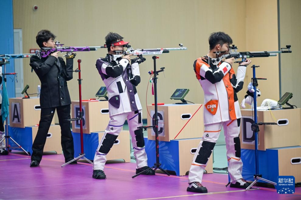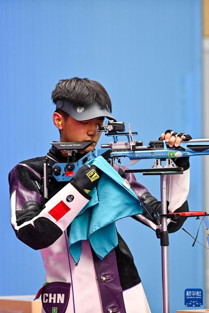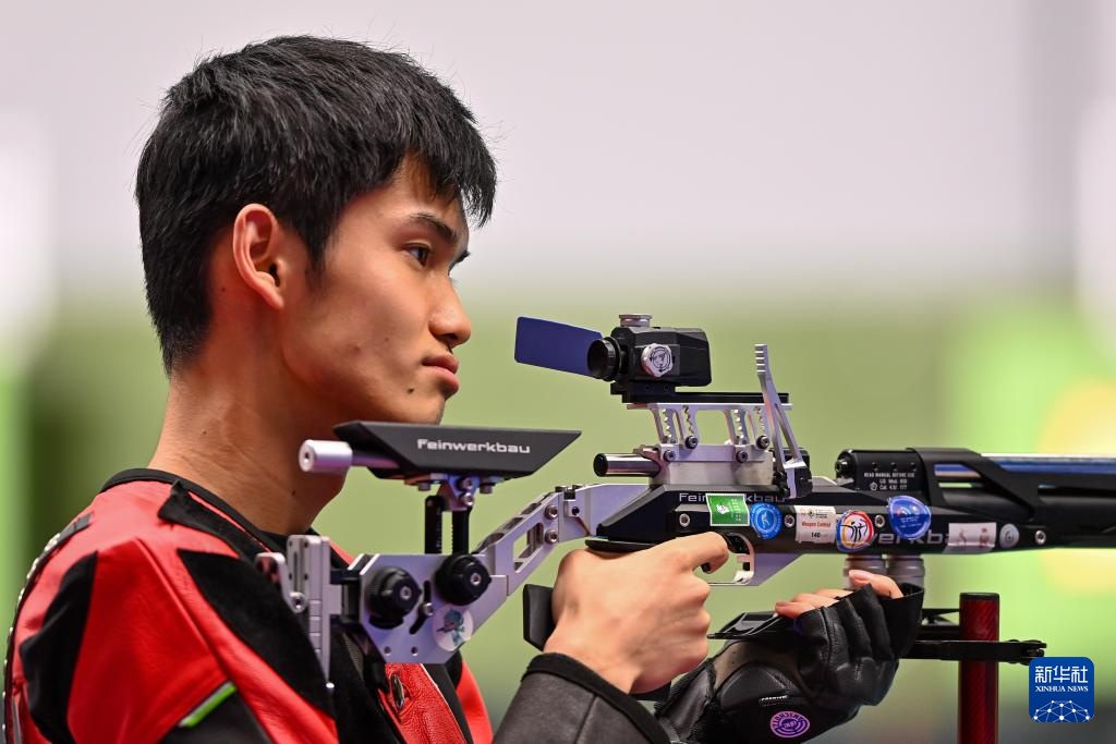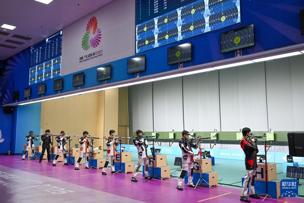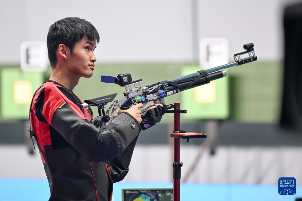 当日,第十五届全运会射击男子10米气步枪决赛在广州举行。